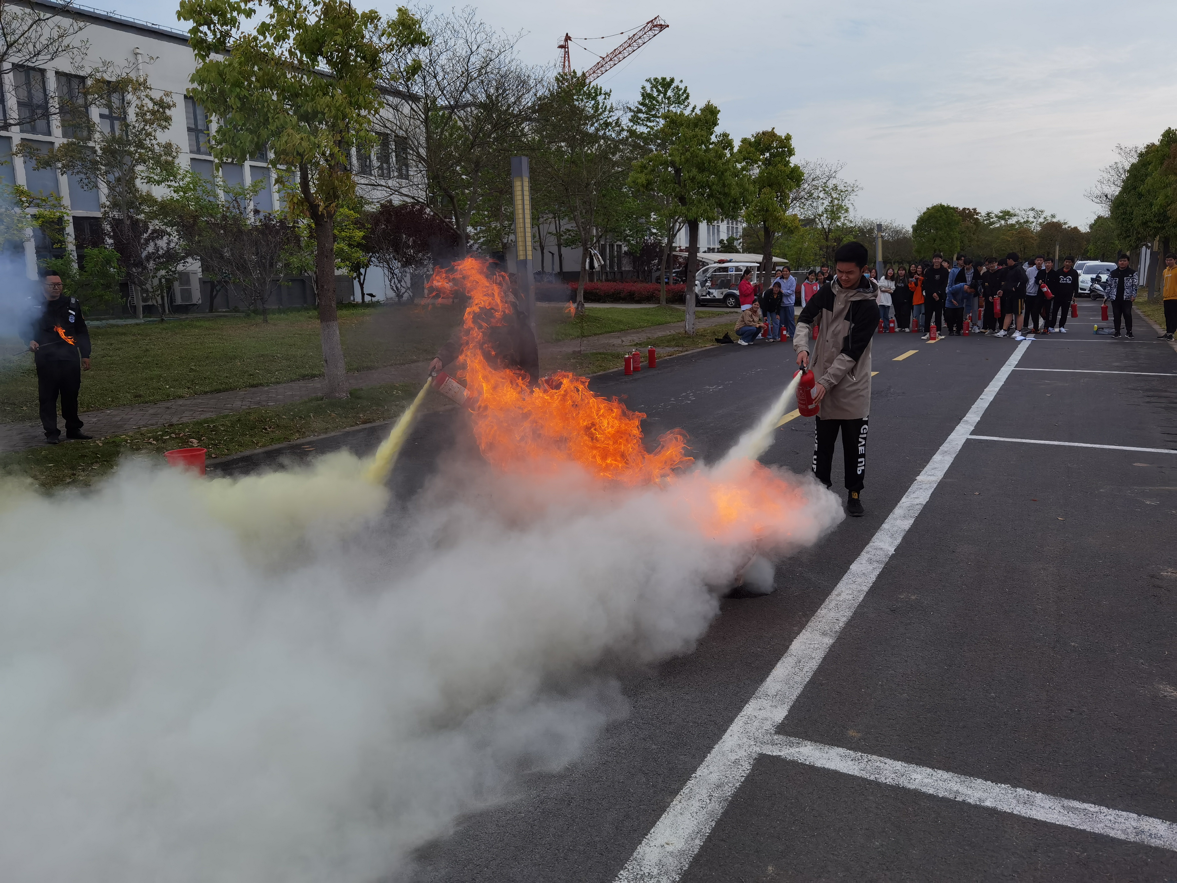 随后学生在指定区域进行灭火实操演练,按照学习的使用方法对模拟火场进行了实地扑救,参加人员基本做到了操作规范、方法正确、态度端正、扑救有效的演练要求,达到了预期的效果。